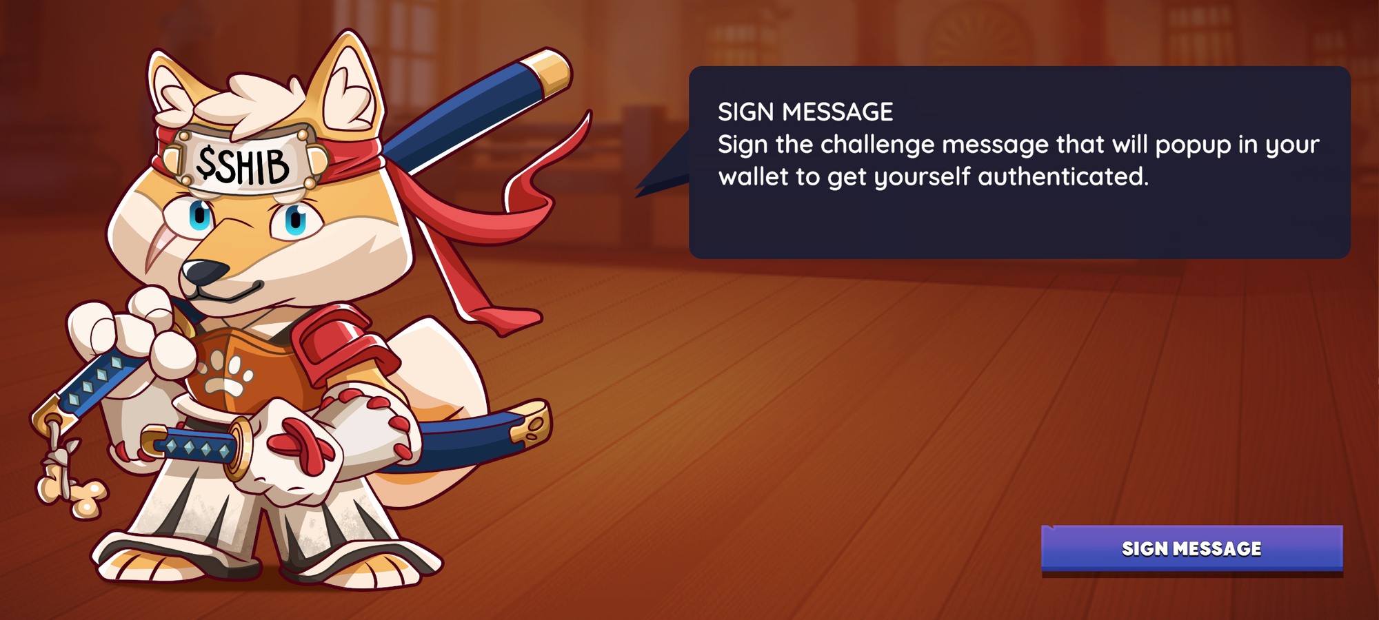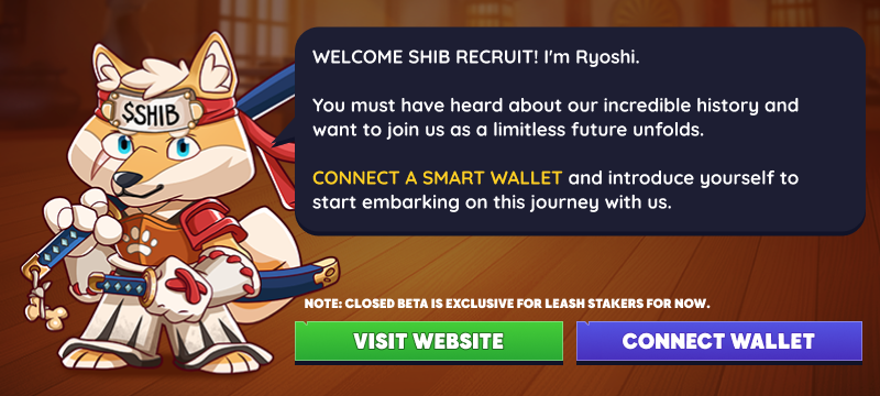 Download and launch Shiba Eternity. After the initial loading screen, you will be asked to connect your wallet.