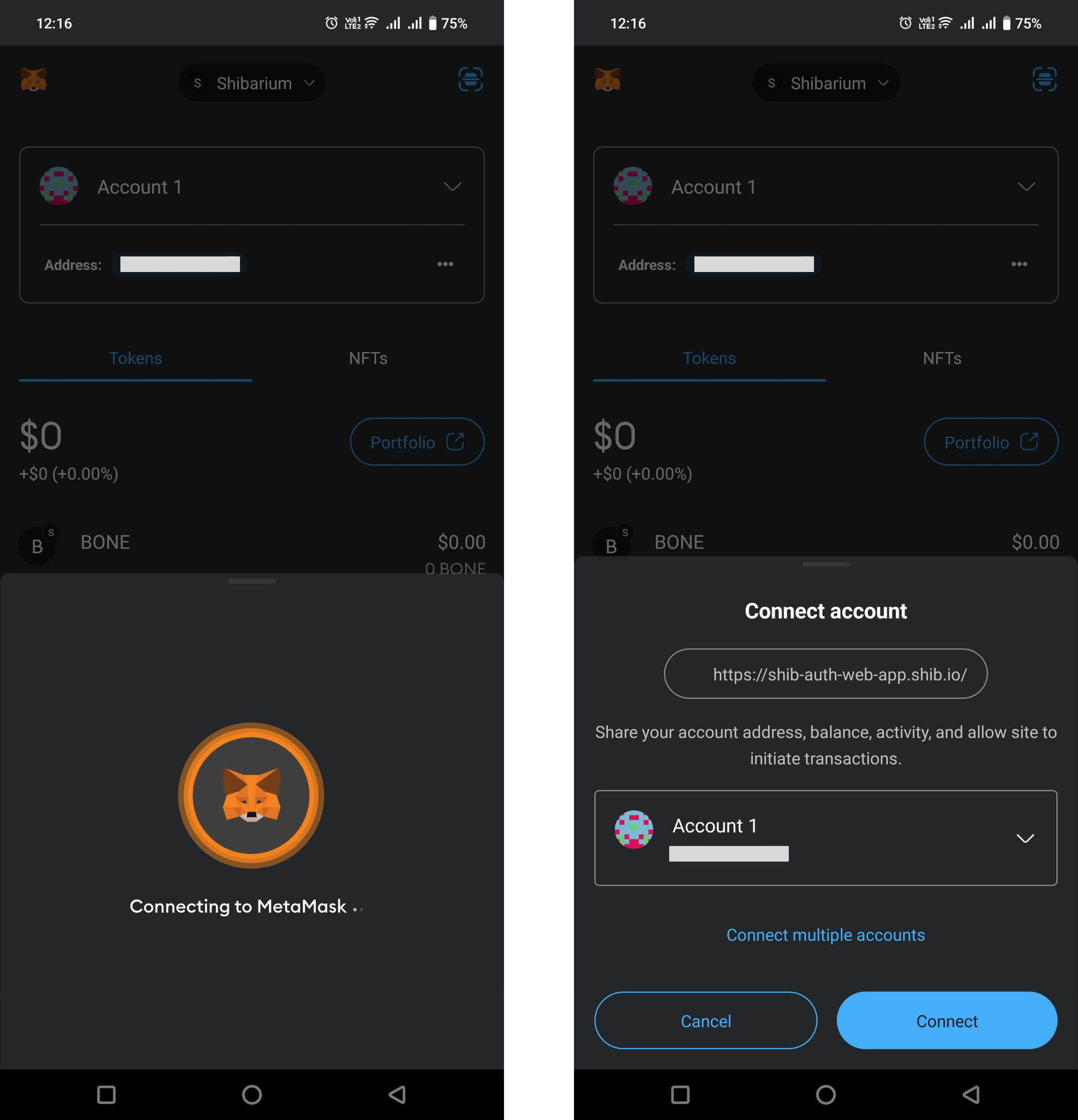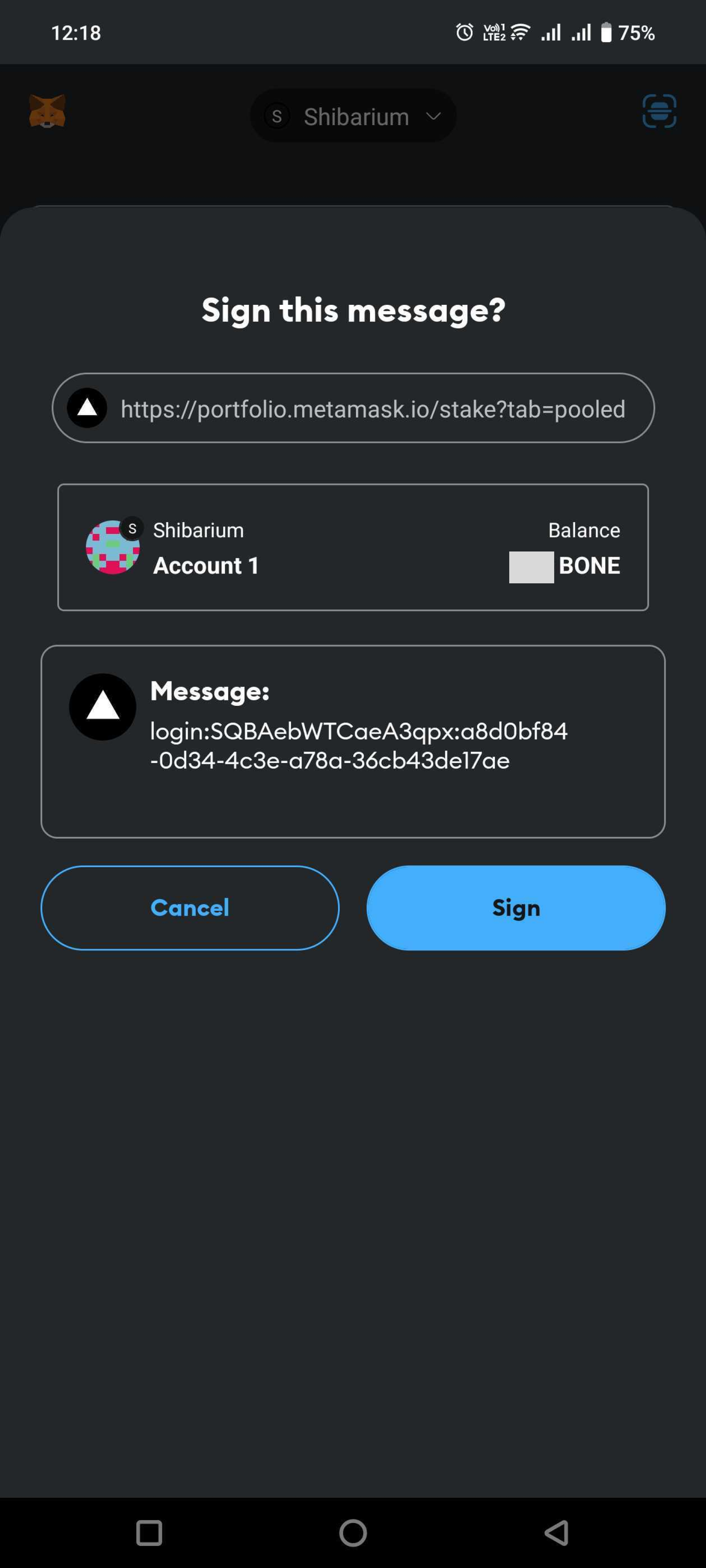 Make sure you are on the Shibarium network in the Metamask wallet before you authenticate.