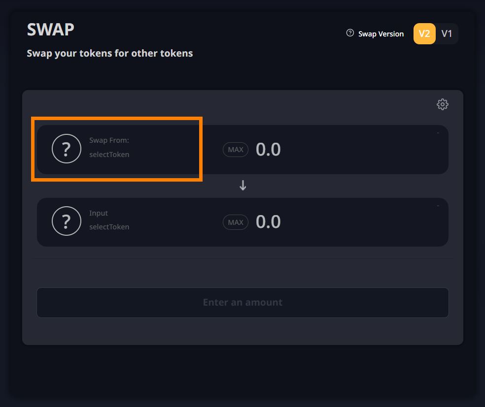 - Go to Create Liquidity Pair from the main page. When the new page is loaded, click on one of the tokens.