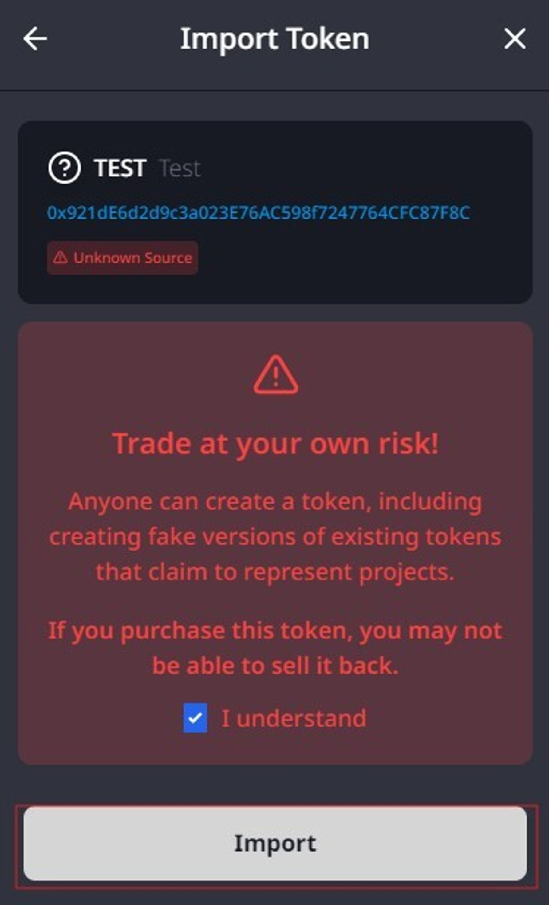 - DYOR. Before you finish importing the new token, it is important to know if you can trust the token issuer and if it is legitimate.